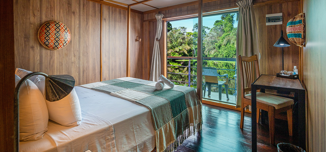 Today you head into the fascinating Mamiraua National Park, a UNESCO World Heritage Site and a highlight of your trip. By motor canoe and on foot, you will look for the scarlet face of a Uacari monkey or a large sloth in the treetops. But huge cormorant colonies, colorful parrots and toucans also offer a great spectacle. In the afternoon there is another excursion in this fascinating national park. After dinner, a spectacular night trip awaits you to observe the Diamond Eyes of the caimans and other nocturnal animals while listening to the nocturnal sounds of the rainforest.