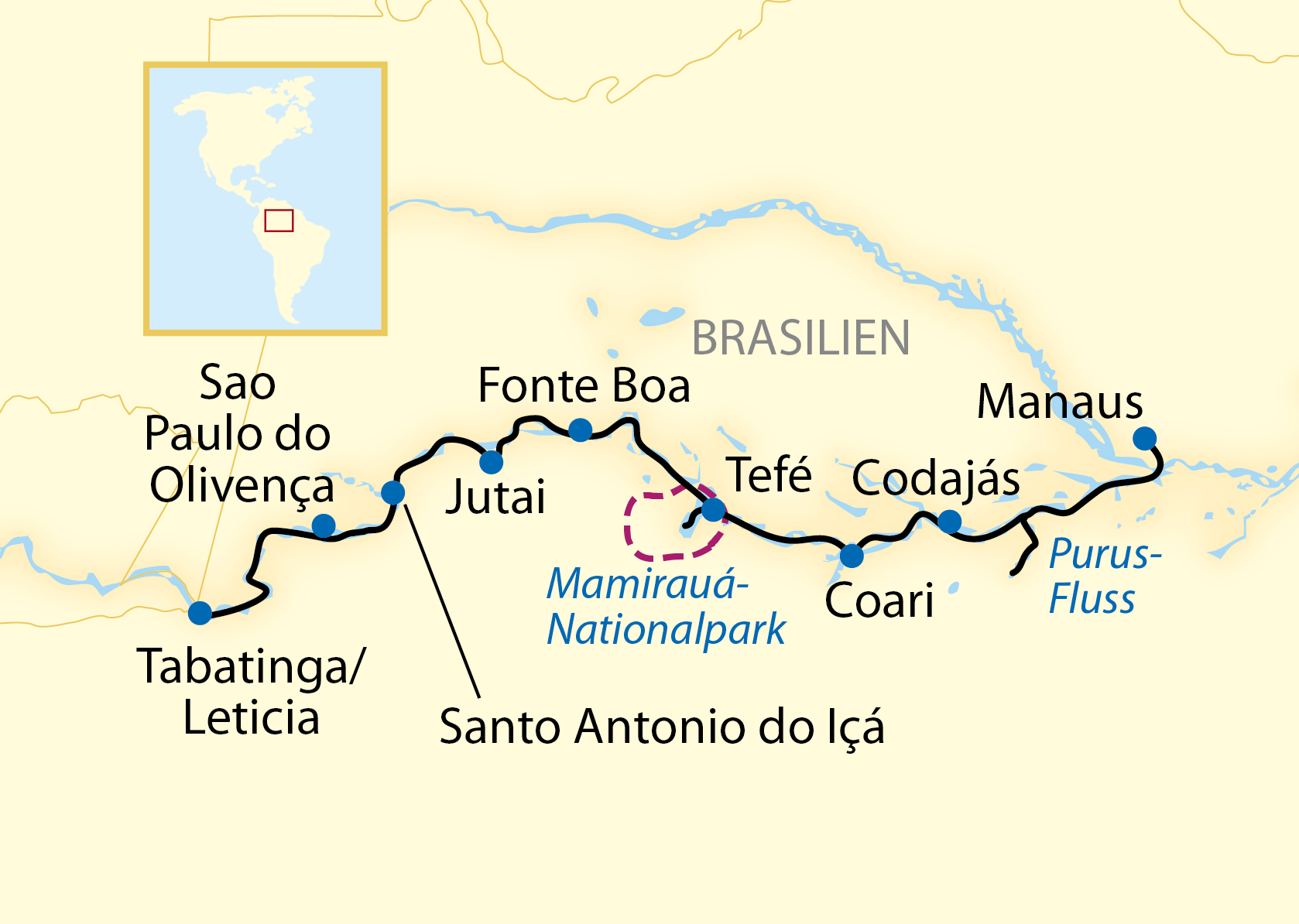 Villa Lira is the starting point for your forest hike today. Around the village you will learn a lot about harvesting the miracle berry Açaí, about Brazil nuts – in Germany, Brazil nuts – and the processing of the manioc root. Back on board, a lecture about the Açaí berry completes your newly acquired knowledge. The MS Jangada then sails past the town of Coarí to the mouth of the Rio Badajos, your destination for today. In the evening, you will see the first part of Werner Herzog’s classic Fitzcarraldo in the on-board cinema – the best film for your jungle adventure!